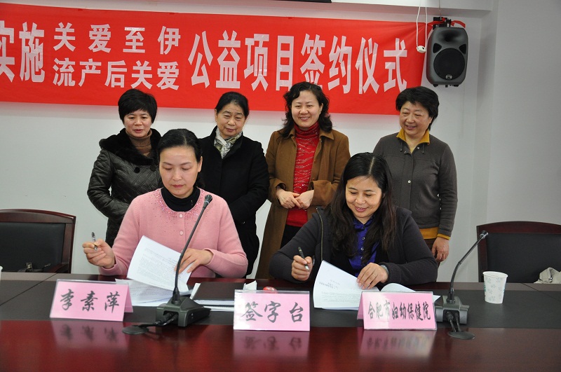 2012年12月13日上午,安徽省實施關愛至伊·流產(chǎn)后關愛公益項目(簡稱PAC項目)舉行簽約儀式。省政府婦兒工委辦公室主任李素萍出席儀式并講話,我省三所PAC項目執(zhí)行醫(yī)院的領導及科室負責人參加了儀式。