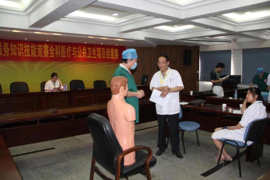 安徽省首屆職工技術(shù)比武運(yùn)動(dòng)會(huì)首個(gè)決賽項(xiàng)目,首屆省城市社區(qū)衛(wèi)生服務(wù)知識(shí)技能競(jìng)賽決賽,于2014年7月9日-10日在安徽醫(yī)學(xué)高等?茖W(xué)校芙蓉路校區(qū)成功舉辦。安徽省衛(wèi)生計(jì)生委副主任武瓊宇、安徽省勞動(dòng)競(jìng)賽委員會(huì)辦公室副主任、省總工會(huì)經(jīng)濟(jì)技術(shù)部副部長(zhǎng)陳麗萍,以及省衛(wèi)生計(jì)生委相關(guān)處室和省全科醫(yī)學(xué)培訓(xùn)中心相關(guān)負(fù)責(zé)同志出席競(jìng)賽工作準(zhǔn)備會(huì)議并巡視了賽場(chǎng)。陳麗萍付主任介紹了全省職工技術(shù)比武運(yùn)動(dòng)會(huì)的情況,對(duì)社區(qū)衛(wèi)生競(jìng)賽活動(dòng)作為首個(gè)決賽項(xiàng)目的示范作用給予充分肯定;武瓊宇副主任強(qiáng)調(diào)了社區(qū)衛(wèi)生服務(wù)競(jìng)賽比武的重要性,要求各市要以“三基”訓(xùn)練為抓手,切實(shí)提升服務(wù)能力和水平。