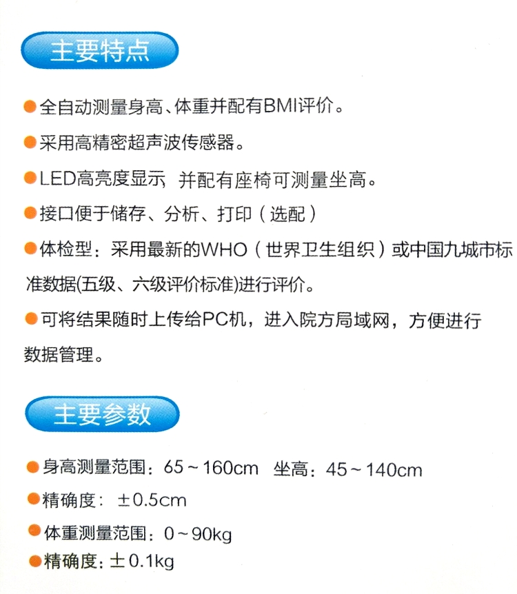 超聲波兒童智能體檢儀(身高+體重+坐高+評價)