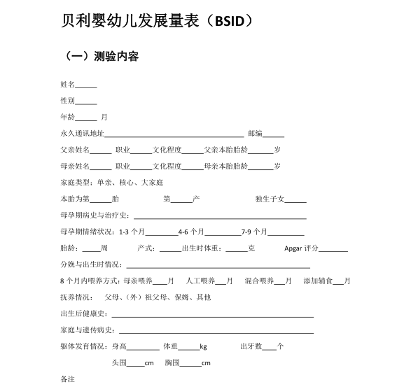 BSID貝利嬰幼兒發(fā)展量表工具箱