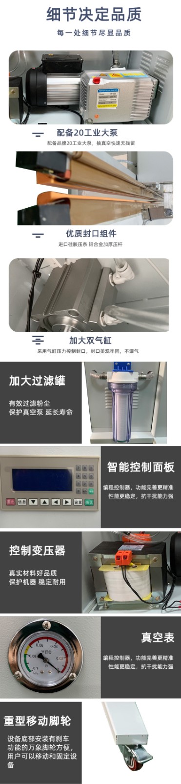 - 高精度真空度控制:可根據(jù)不同的包裝需求,精確調(diào)整真空度,確保包裝質(zhì)量。