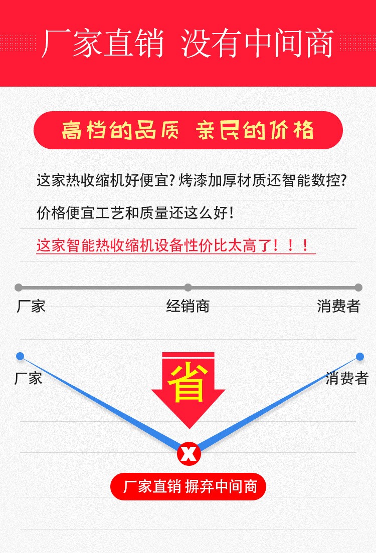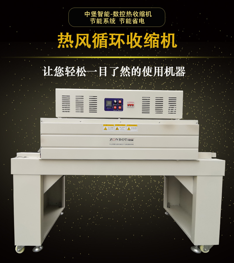 熱收縮機具有以下功能特點: 一、包裝功能 緊密貼合包裝:熱收縮機能夠利用熱收縮薄膜遇熱收縮的特性,將薄膜緊密貼合在被包裝物品的表面。無論是規則形狀還是不規則形狀的物品,都能通過選擇合適的薄膜及調整相關參數,實現薄膜與物品的完美貼合,形成光滑、平整的包裝外觀,有效防止灰塵、濕氣等外界因素進入包裝內部,起到良好的保護作用。 組合包裝:可以將多個相同或不同的物品進行組合包裝。比如在食品行業,能把多瓶飲料、多包零食等組合在一起進行熱收縮包裝,便于運輸和銷售,同時也增加了產品在貨架上的展示效果,提高產品的整體辨識度