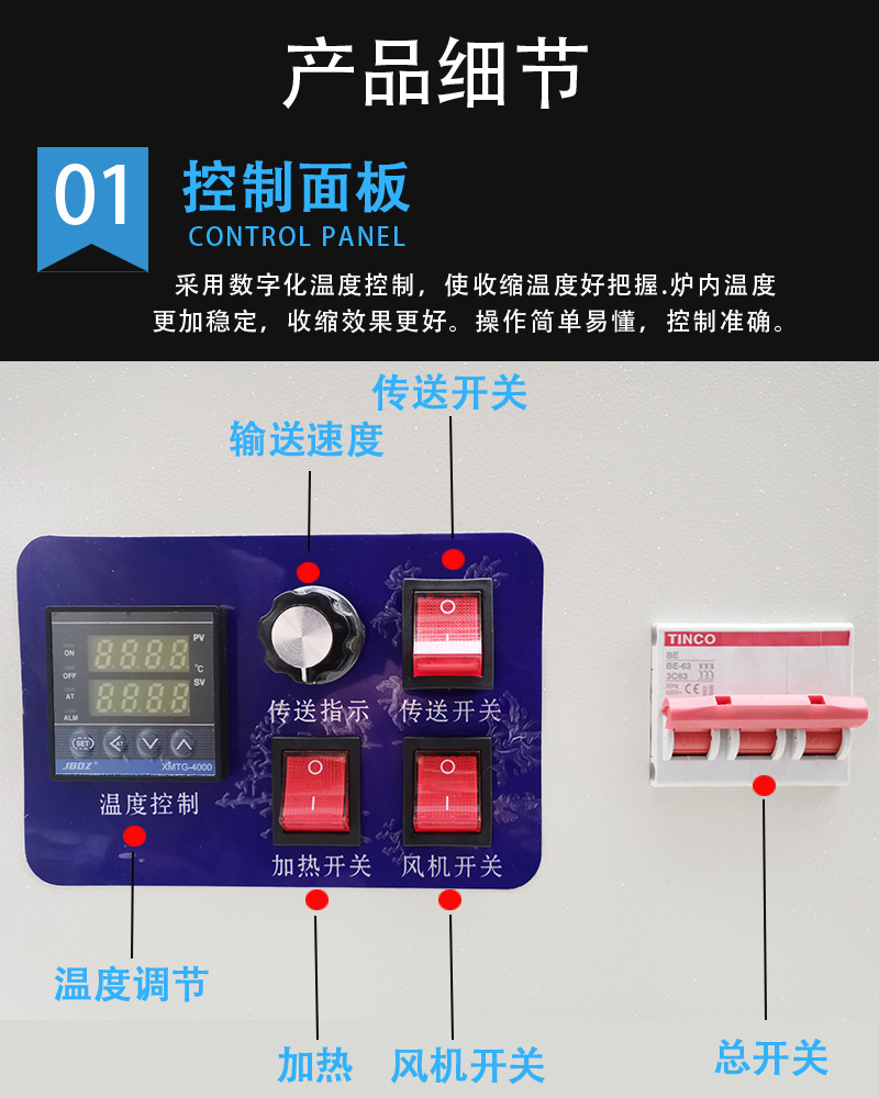 3. 加熱系統:由加熱元件、溫度控制裝置等組成。加熱元件產生熱量,溫度控制裝置則可精確調節和控制加熱溫度,確保熱收縮薄膜能在適宜的溫度下進行收縮,保證包裝質量。常見的加熱元件有電熱絲、石英管等,不同的加熱元件在加熱效率、溫度均勻性等方面存在差異。
