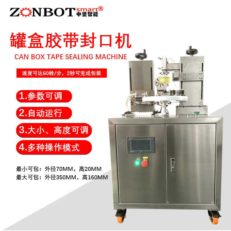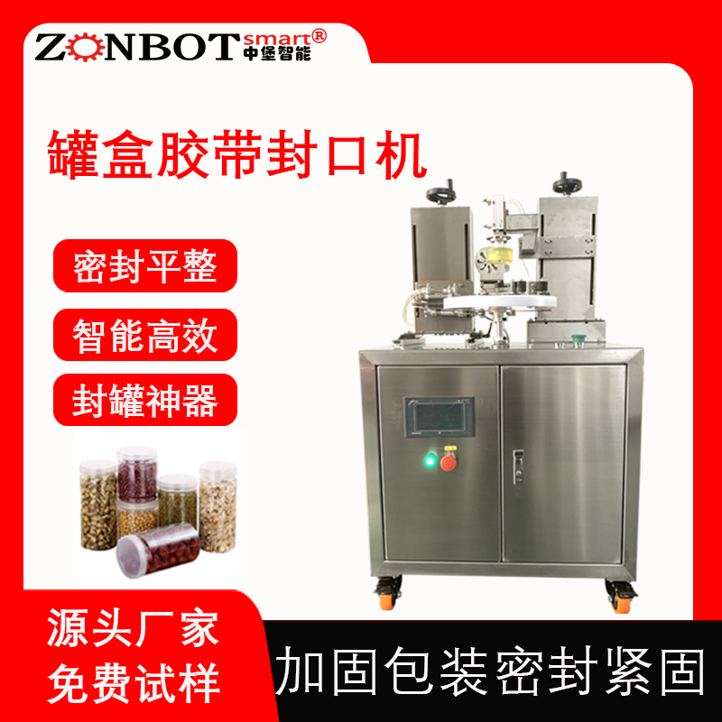 - 定位與準備:當罐盒被輸送到封口區域時,定位系統開始工作。通過光電傳感器或機械定位裝置,確保罐盒精準地停留在封口位置。同時,膠帶供給系統啟動,將膠帶從膠帶卷上引出,經過張力控制和引導部件,使膠帶處于準備貼合的狀態。