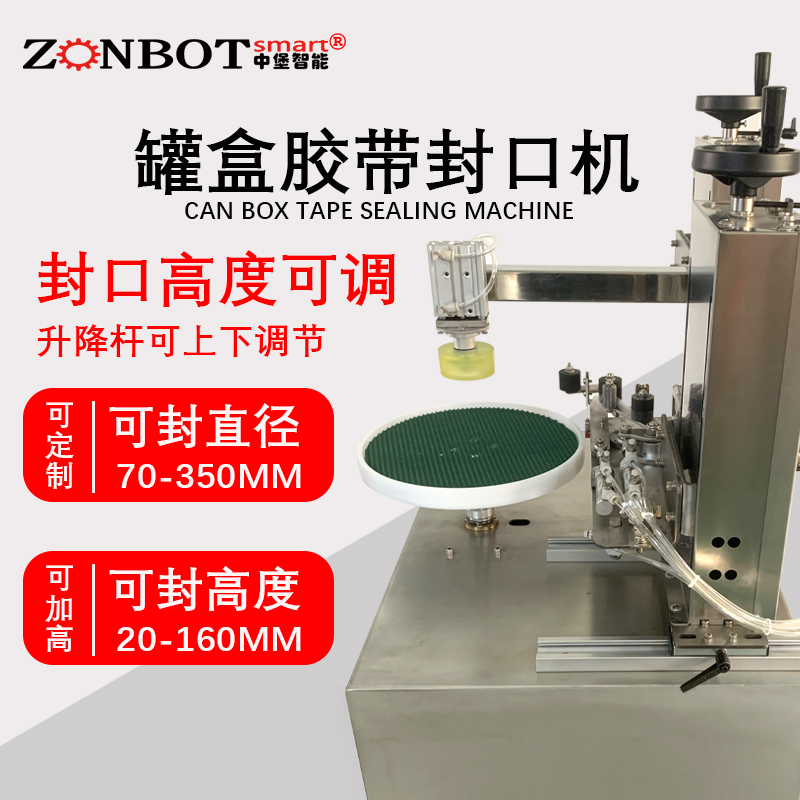 - 圓形罐盒:對于圓形罐盒,罐盒膠帶封口機的工作效果通常較好。因為圓形罐盒的開口邊緣是連續的曲線,膠帶在貼合和滾壓過程中能夠比較均勻地圍繞罐盒一周。而且,設備的壓帶輪和滾壓裝置可以很容易地根據圓形的弧度進行調整,以保證膠帶貼合緊密。例如,常見的飲料易拉罐、圓形茶葉罐等都可以使用這種設備進行高效、高質量的封口。