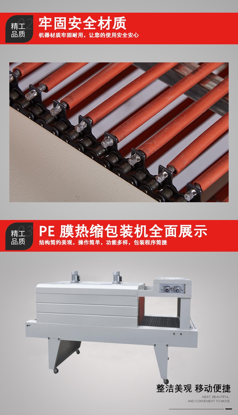 - 適用范圍廣:可以用于包裝各種形狀和尺寸的產品,無論是規則的圓柱體、長方體,還是不規則的產品,只要選擇合適的 PE 薄膜,都可以用這種機器進行包裝。而且它可以與其他包裝設備和生產線集成,實現自動化包裝,提高生產效率。