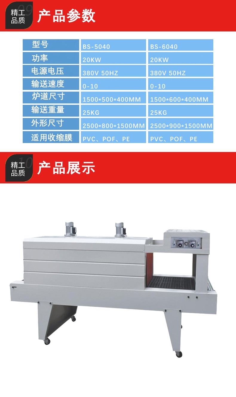 主要包括輸送帶和驅(qū)動(dòng)電機(jī)。輸送帶用于承載并輸送被 PE 薄膜包裹的產(chǎn)品通過(guò)加熱區(qū)域。驅(qū)動(dòng)電機(jī)控制輸送帶的速度,這個(gè)速度是可以調(diào)節(jié)的。其重要性在于確保產(chǎn)品在加熱區(qū)域停留足夠的時(shí)間,讓 PE 薄膜充分收縮。例如,如果輸送帶速度太快,PE 薄膜可能來(lái)不及完全收縮就離開(kāi)了加熱區(qū)域,導(dǎo)致包裝質(zhì)量不佳;如果速度太慢,又會(huì)影響包裝效率。