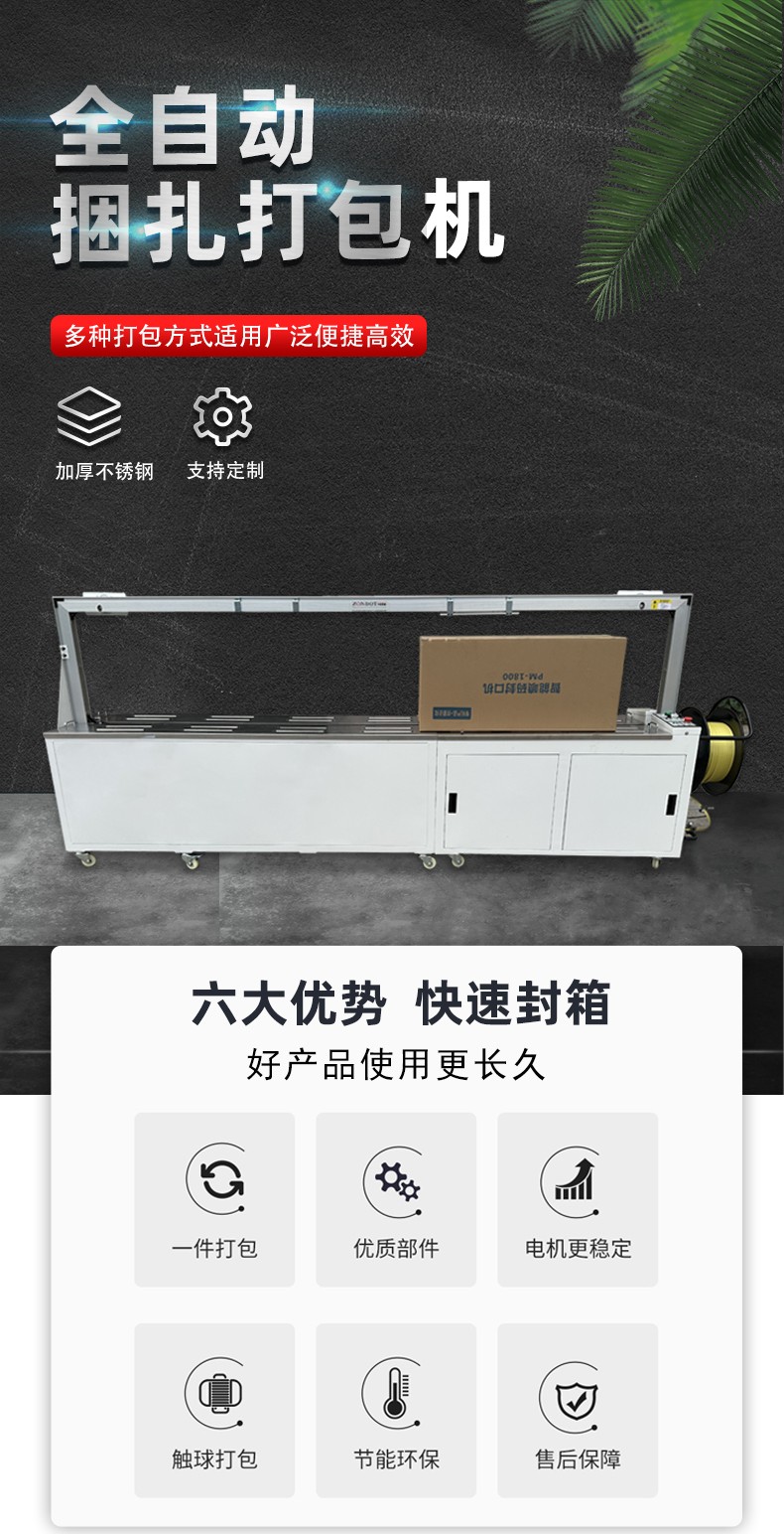 全自動打包機是一種高效、便捷的包裝設備,廣泛應用于各個行業的產品包裝環節,以下從工作原理、結構組成、性能特點、應用范圍等方面對其進行簡要概述: