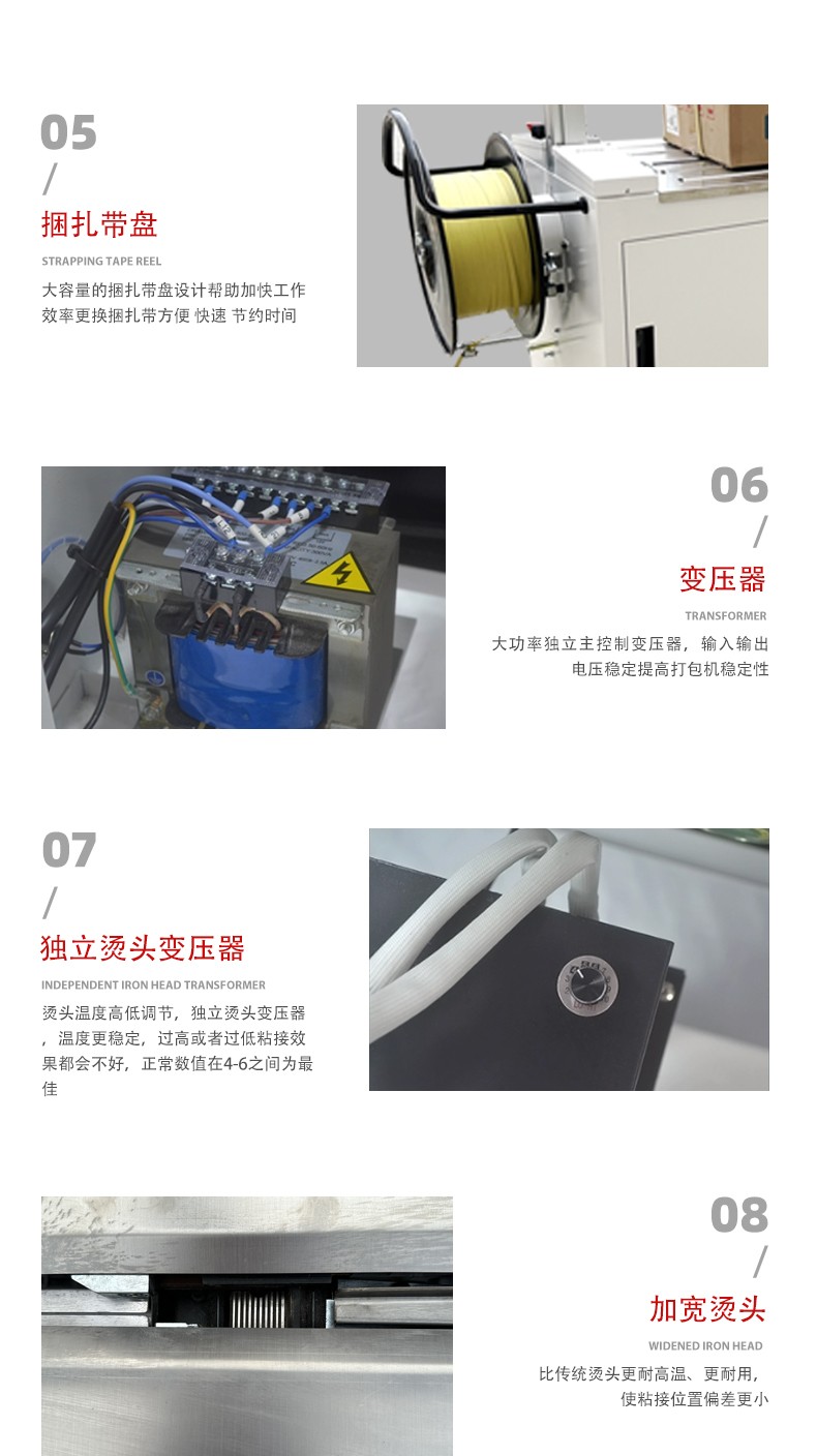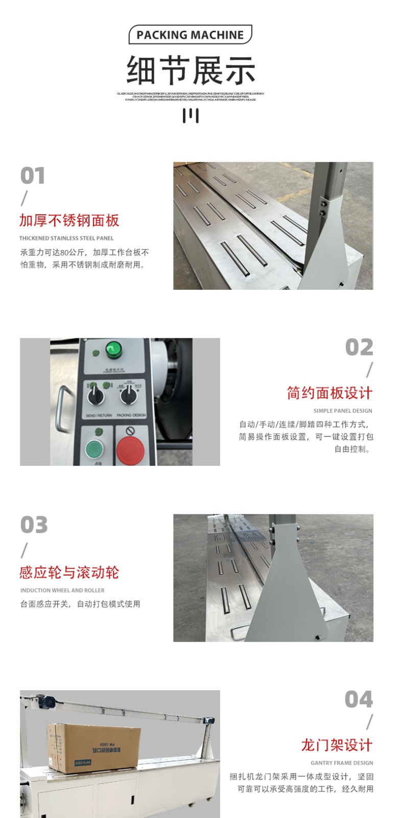 - 能夠精確控制打包帶的使用長度,避免了人工打包時可能出現的打包帶浪費現象,節約了包裝材料成本。