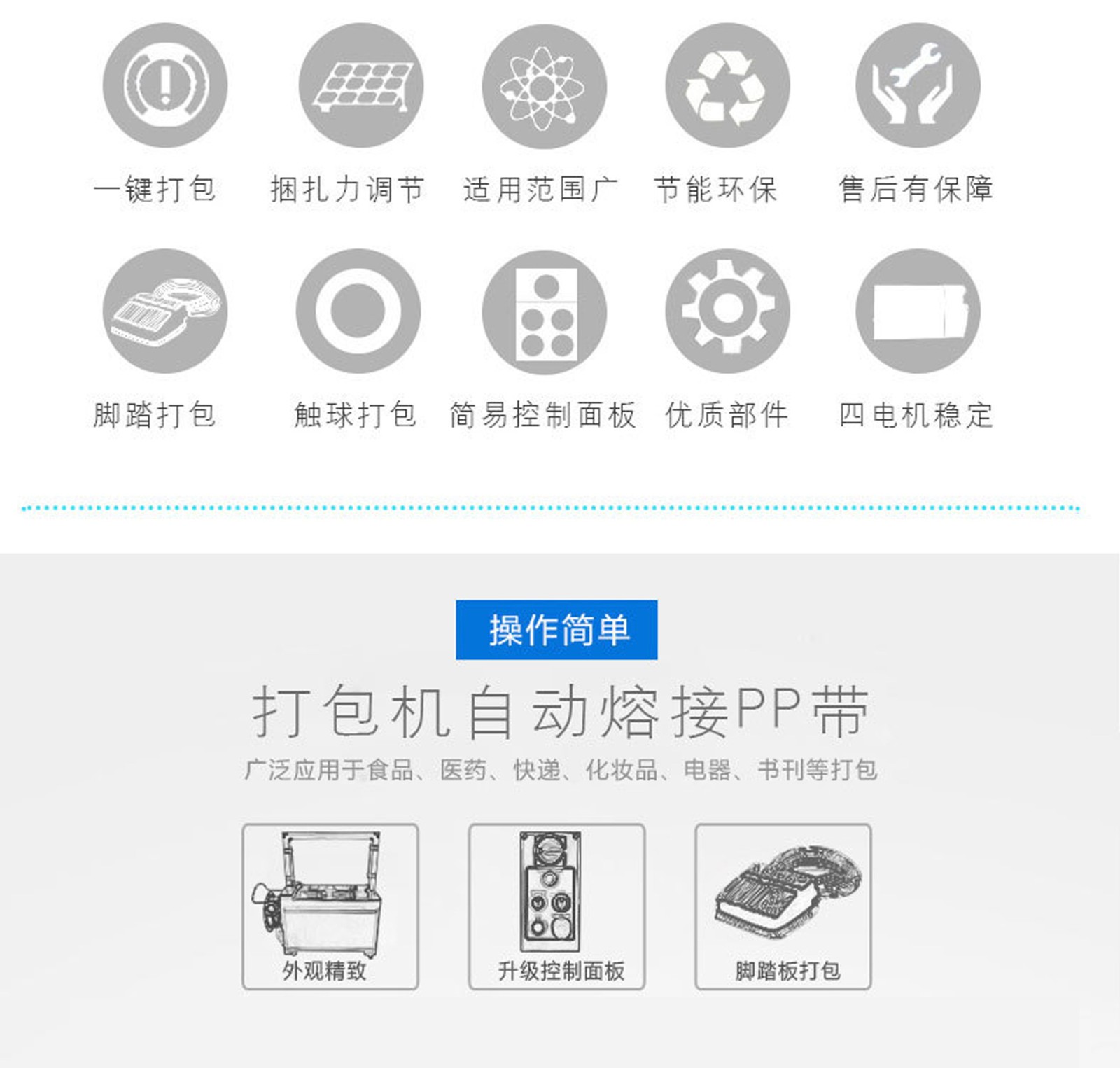 該打包機具有自動上膠、自動切帶、自動封口等功能,操作簡單,維護(hù)方便。同時,它還具備故障自診斷和自動保護(hù)功能,確保在使用過程中安全可靠。