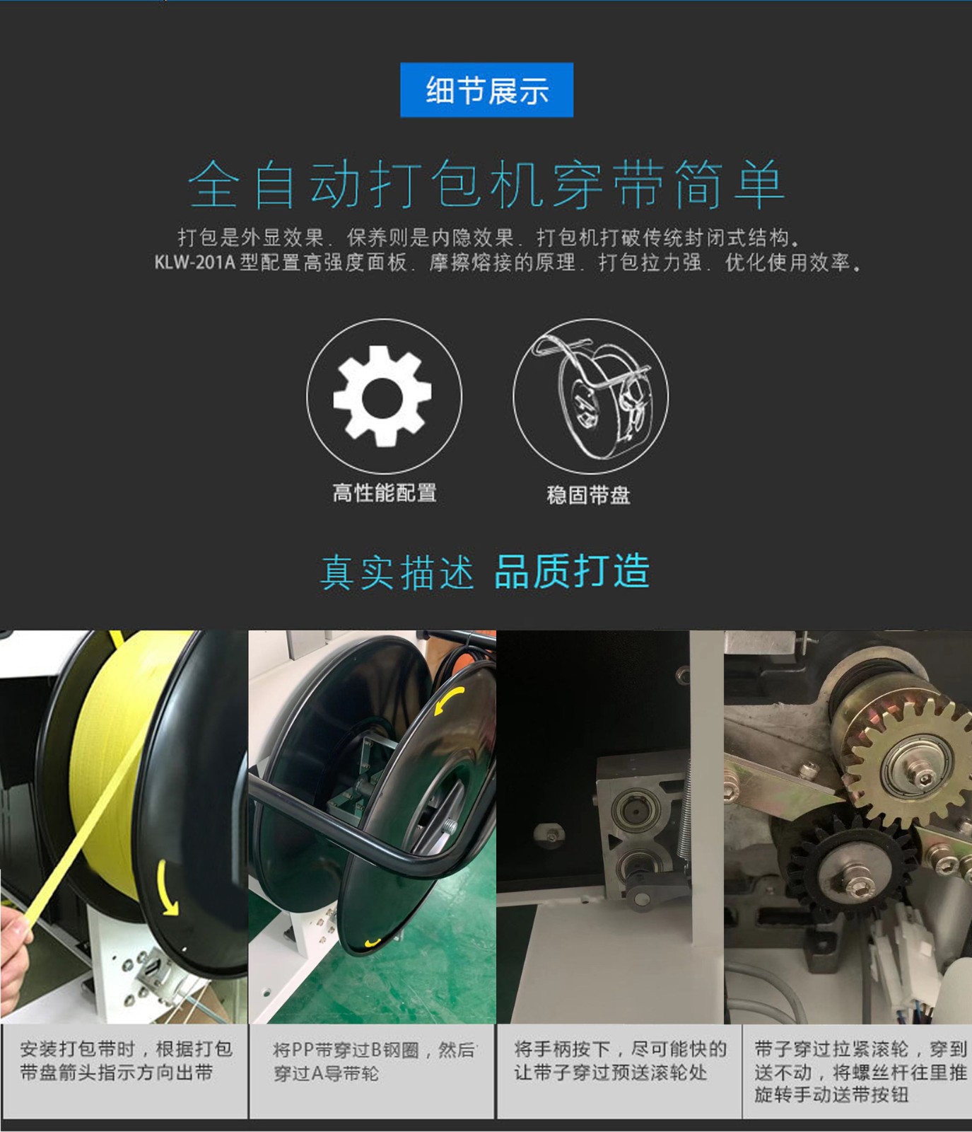 301全自動打包機采用優(yōu)質(zhì)材料制造,耐用性強,使用壽命長。同時,其獨特的外觀設(shè)計,簡潔大方,便于清潔和維護(hù)。