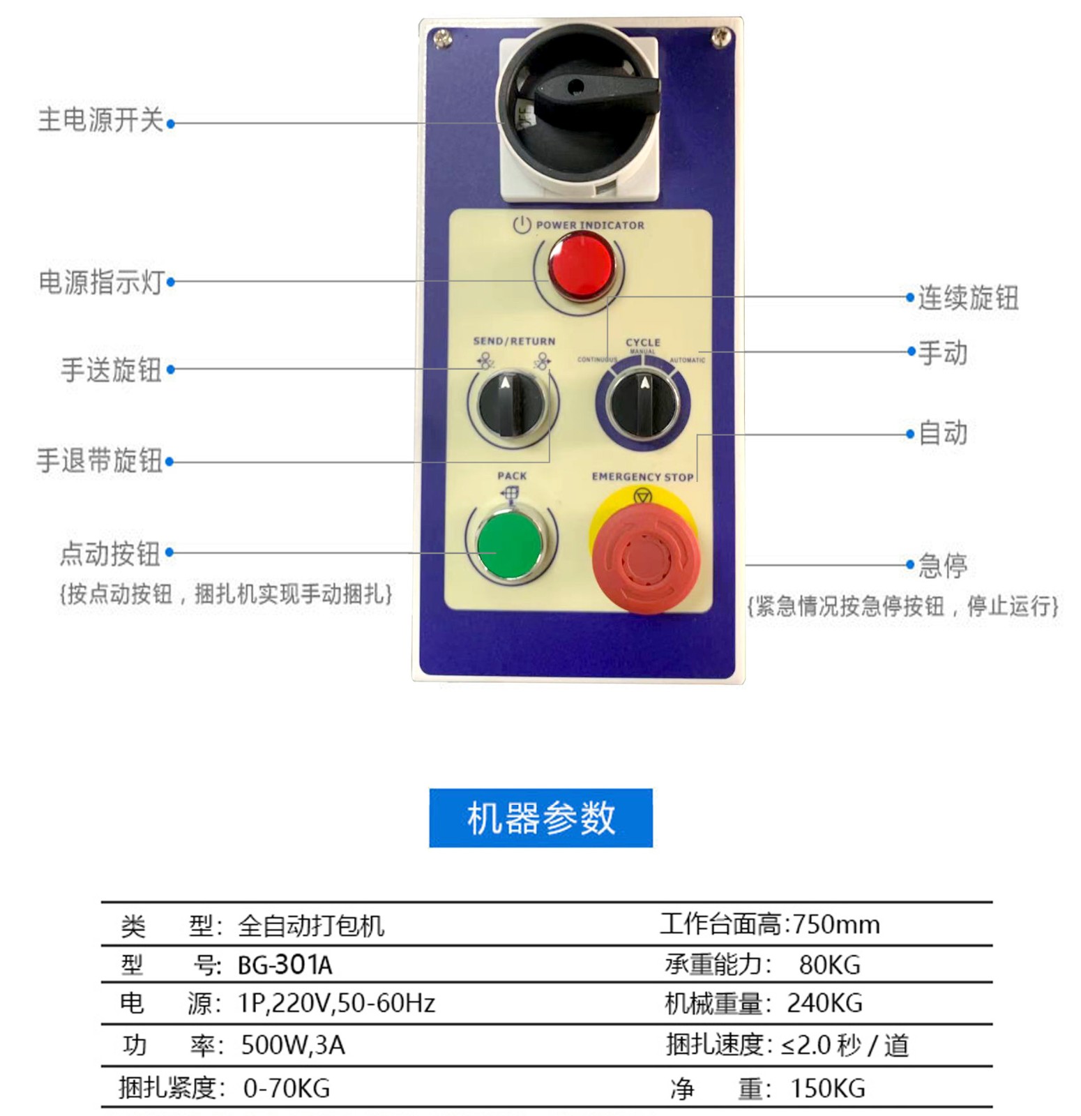 總之,這款301全自動打包機是您提高生產(chǎn)效率、降低成本、提高產(chǎn)品質(zhì)量的理想選擇。現(xiàn)在,趕快行動起來,讓這款全自動打包機為您的事業(yè)添磚加瓦吧!
