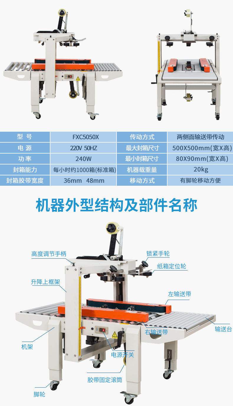 封箱機主要適用于紙箱的封箱包裝,既可單機作業,也可與流水線配套使用,它可單箱作業,也可與紙箱成型開箱機、裝箱機、貼標機、捆包機、棧板堆疊機、輸送機等設備配套成包裝流水線使用,為包裝流水線作業必須的設備