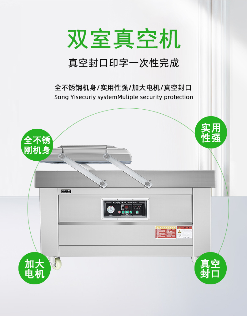 雙室食品真空包裝機適用于食品行業、肉類、四川榨菜、醬制品、調味品、果脯、糧食、豆制品、化學品、藥材的顆粒、粉狀、液體等商品進行真空包裝,可以防止產品氧化霉變、腐爛、防潮、達到延長產品的儲存或保鮮期限。雙室食品真空包裝機適用于食品行業、肉類、四川榨菜、醬制品、調味品、果脯、糧食、豆制品、化學品、藥材的顆粒、粉狀、液體等商品進行真空包裝,可以防止產品氧化霉變、腐爛、防潮、達到延長產品的儲存或保鮮期限。