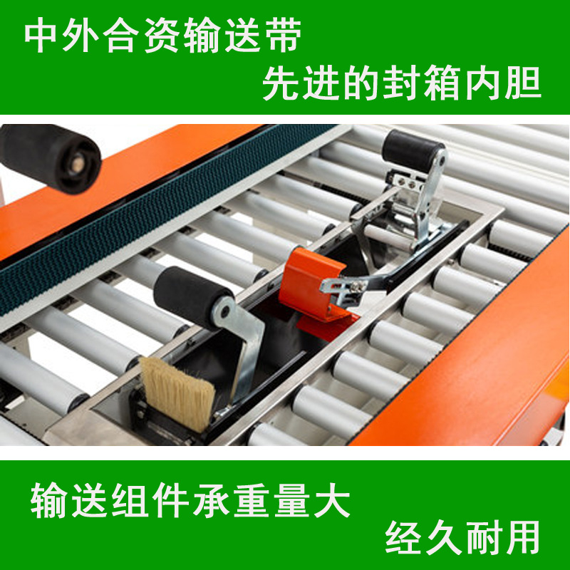 輕巧耐用,操作簡單;側面皮帶驅動,適用較窄紙箱;上下皮帶驅動,適用于較高紙箱;封箱機節省勞動力,減少開箱現象。連線使用可配套折蓋封箱機,單臺使用可選用半自動封箱機。