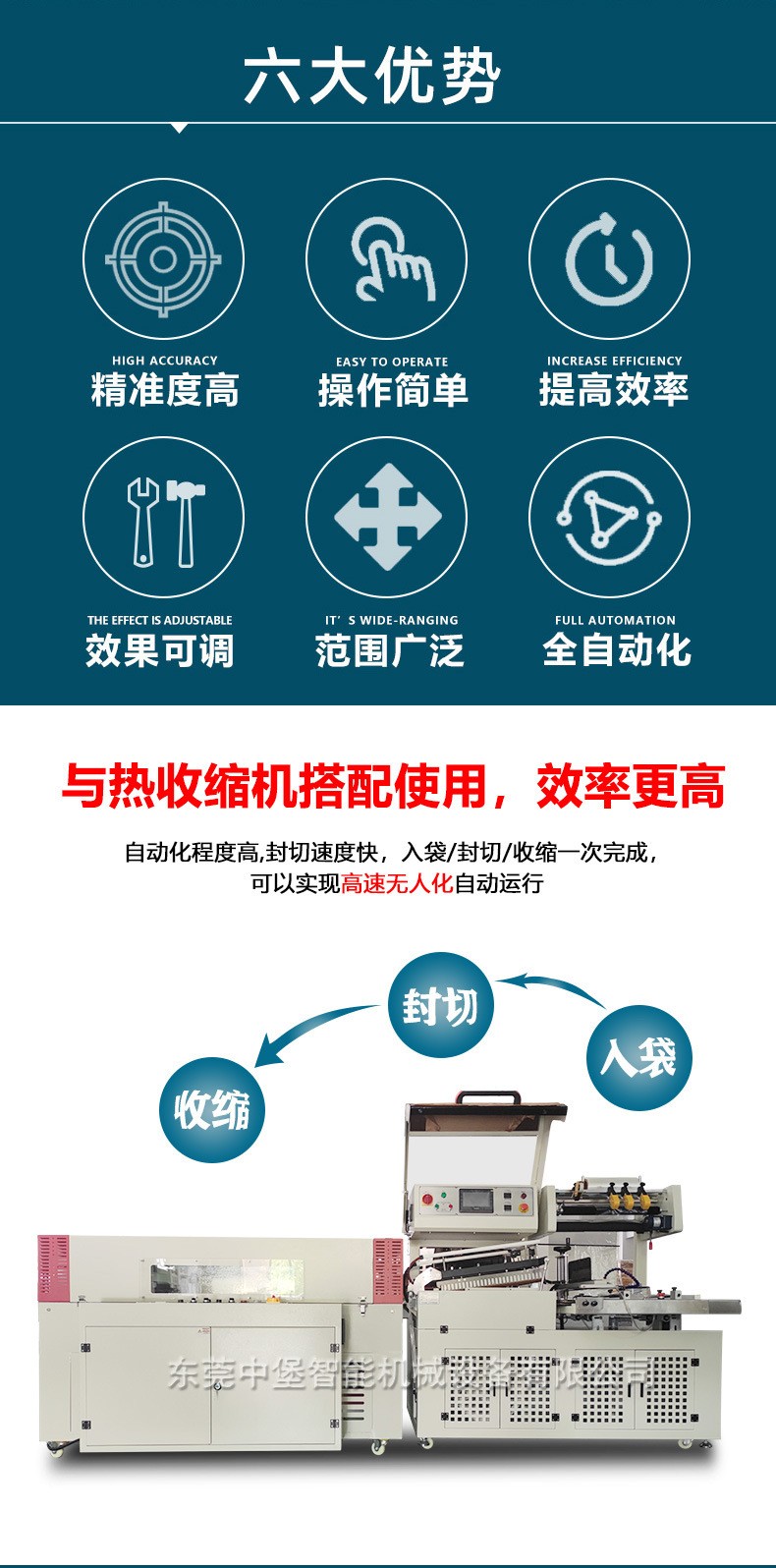 封切機(jī)是全自動無人化操作的包裝機(jī),廣泛用于批量生產(chǎn)包裝的流水作業(yè),工作效率高,自動送膜打孔,自動套膜封切,自動卷取廢料;只需手動調(diào)節(jié)導(dǎo)膜系統(tǒng)以及手動調(diào)節(jié)進(jìn)料輸送平臺,適用不同寬度及高度的產(chǎn)品