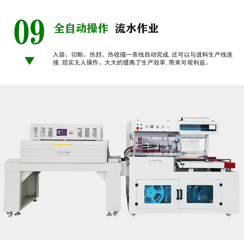 封切機是全自動無人化操作的包裝機,廣泛用于批量生產包裝的流水作業,工作效率高,自動送膜打孔,自動套膜封切,自動卷取廢料;只需手動調節導膜系統以及手動調節進料輸送平臺,適用不同寬度及高度的產品。