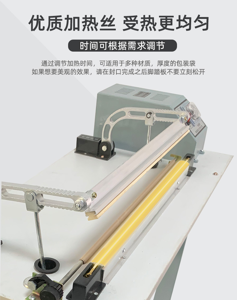 腳踏封口機適用于各種塑料薄膜、?復合薄膜及鋁塑薄膜的封合。?這種封口機因其高效、?簡單操作和廣泛的應用領域,?被廣泛應用于食品、?醫藥、?五金等多個行業。?