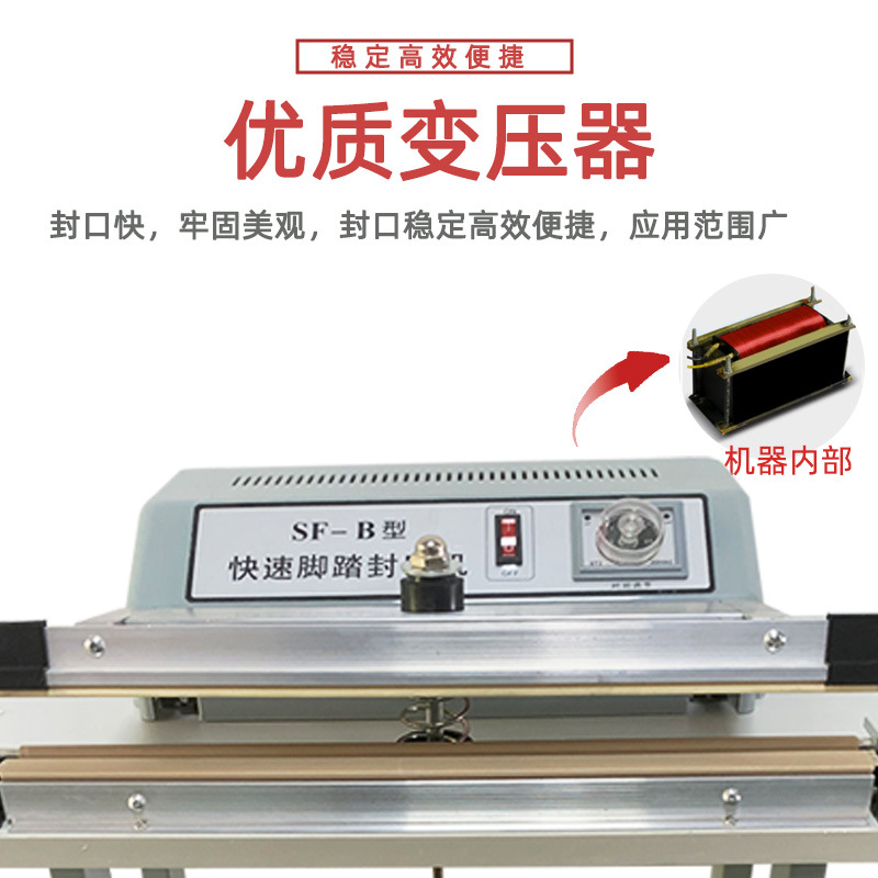 腳踏封口機適用于各種塑料薄膜、?復合薄膜及鋁塑薄膜的封合。?這種封口機因其高效、?簡單操作和廣泛的應用領域,?被廣泛應用于食品、?醫(yī)藥、?五金等多個行業(yè)。?具體來說,?腳踏封口機的應用特點包括:?