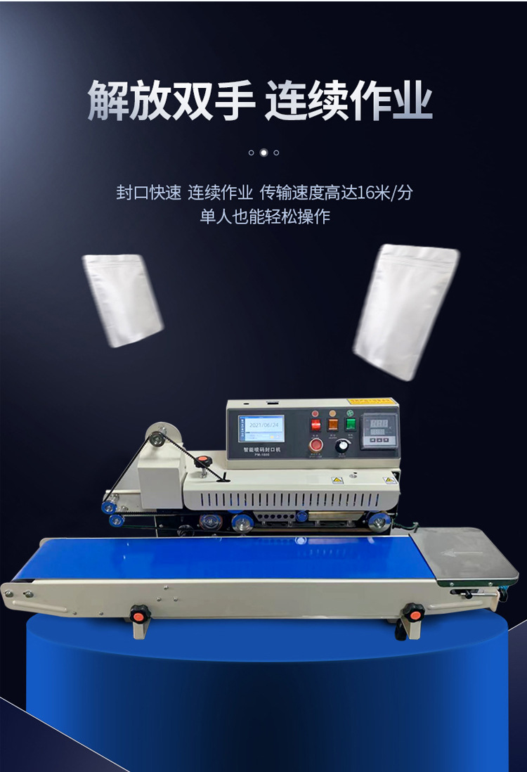 PRODUCT CENTER連續(xù)式噴碼封口機(jī)適用于醫(yī)藥、?農(nóng)藥、?食品、?日化、?潤(rùn)滑油等行業(yè)。?這種設(shè)備特別適用于鋁箔袋、?塑料袋、?復(fù)合袋的封口,?是這些行業(yè)中常用的包裝設(shè)備。?連續(xù)式噴碼封口機(jī)具有封口牢固、?功效高、?結(jié)構(gòu)簡(jiǎn)單緊湊、?體積小、?造型美觀、?技術(shù)先進(jìn)、?功耗低以及操作維修保養(yǎng)方便等優(yōu)點(diǎn),?因此被廣泛用于食品、?醫(yī)藥、?化妝品、?日常用品等行業(yè)的包裝過程中。?在生產(chǎn)過程中,?連續(xù)式噴碼封口機(jī)需要每天更換生產(chǎn)日期以確保產(chǎn)品質(zhì)量和安全,?符合食品衛(wèi)生法規(guī)定,?是一種理想的封口機(jī)械。?此外,?該設(shè)備還可以根據(jù)需要更換日期、?批號(hào),?使用方便,?能夠滿足不同行業(yè)的需求